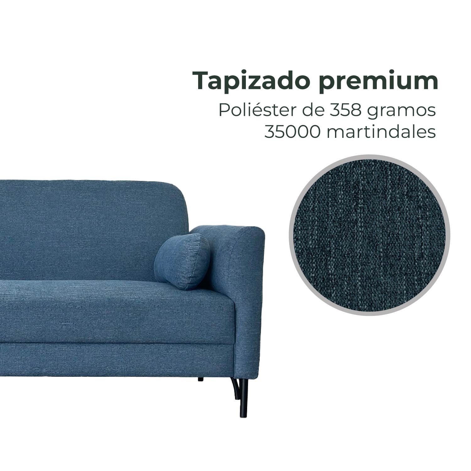 - Tapizado en 100% poliéster premium de 358 gramos (35000 martindales)