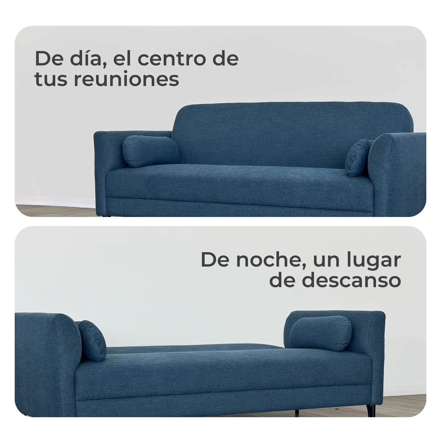 Si cuentas con poco espacio y necesitas optimizarlo al máximo este sofá cama de 3 plazas es la solución perfecta ti. Durante el día, funciona como un moderno y espacioso sofá para recibir visitas o relajarte; por la noche, se convierte fácilmente en una cama cómoda. Disfruta de este aliado perfecto para aprovechar tus espacios sin renunciar al confort.